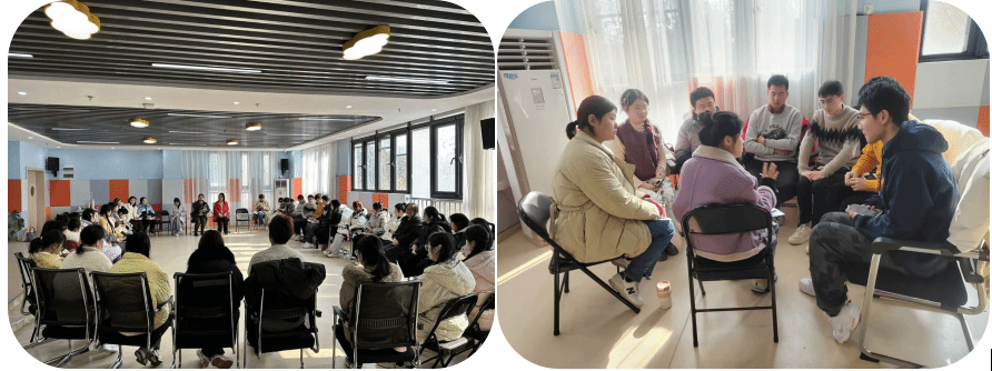 随后,学生们与幼儿园教师针对半日实践活动进行了教学研讨。在集体研讨环节,学生代表和教师代表分别表达了活动感悟,并根据活动过程提出了教学实践方面的不足;在小组研讨环节,各组学生与所在班级幼儿园教师分析了活动设计与实施中的收获,老师们详细解答了同学们提出的问题并给出指导性意见。