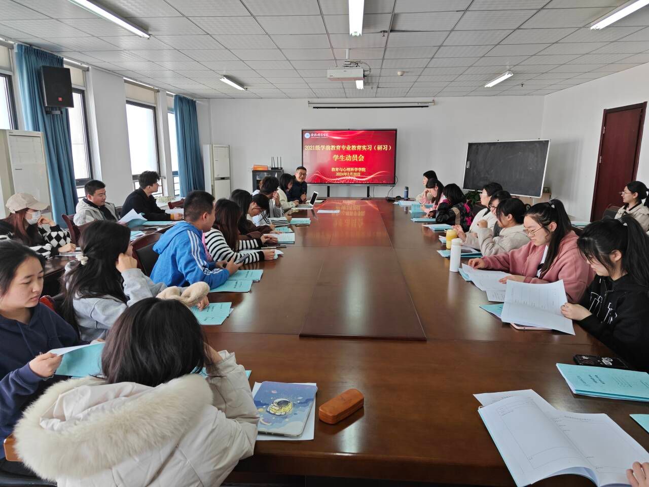孙延永强调,实习期间要注意作为幼儿教师的仪表要求与行为规范,尊重幼儿、热爱幼儿,充分利用实习单位的资源,积极完成各项实习任务,以实践促成长。蒋晨晓详细说明了实习的计划和任务,明确了实习要求,对学生有关问题进行了解答。