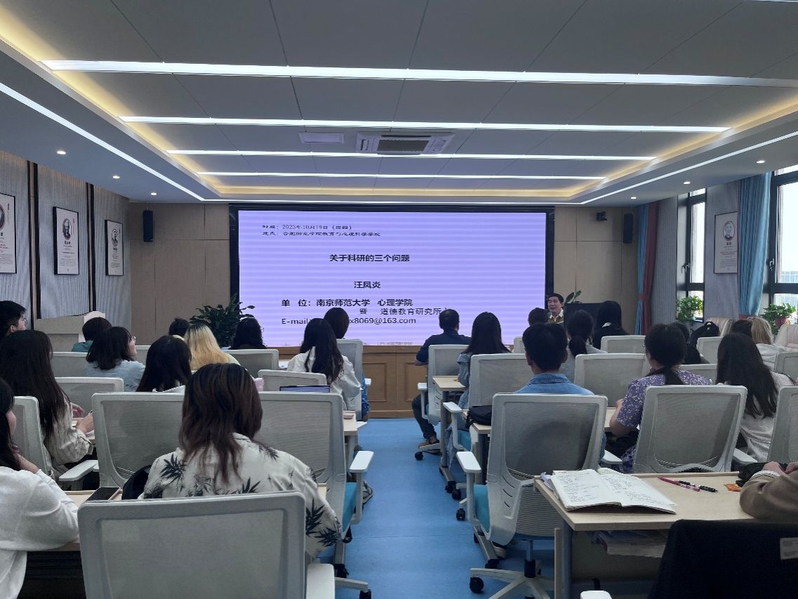 汪凤炎教授作了“关于科研的三个问题”的报告。汪教授生动形象地讲解了关于科研的三个问题,即“为什么要做科研”、“什么是科研”、“如何做科研”,并全面分析了在科研中可能遇到的问题,引发在场师生极大的启发、共鸣和深思。汪教授还殷切的鼓励同学们铭记“心诚则灵”和“树立崇高志向”的理念,以取得卓越的学术成就。报告中李群教授、吴桂翎教授和黄凤副教授针对原创综述的定义和自然方法研究方面的突破等问题,与汪教授和同学们进行了深入交流,激发了思想的碰撞,引发了深刻的思考。报告后,汪教授还就学科建设与教师们开展了讨论。