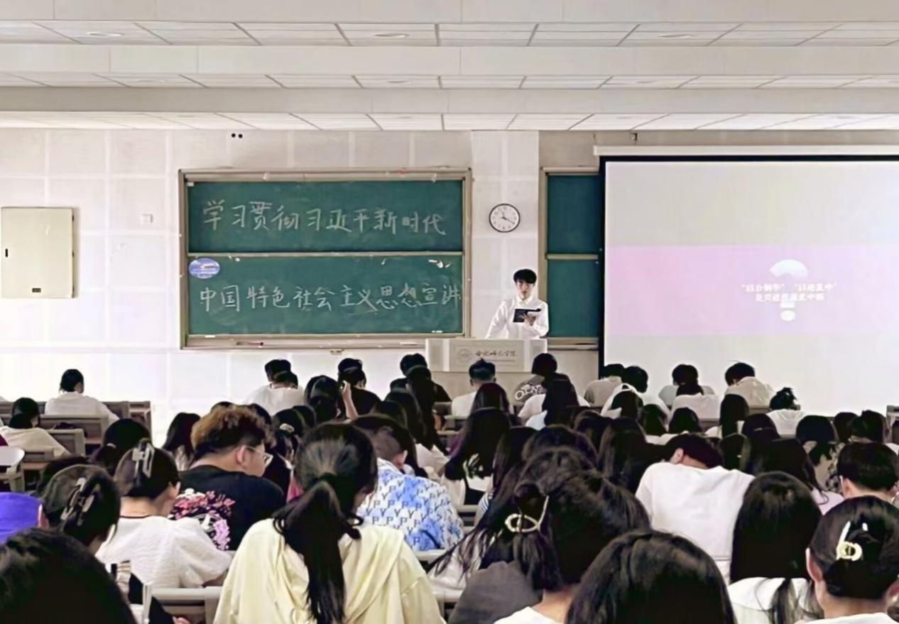 为深入推进学习贯彻习近平新时代中国特色社会主义思想主题教育在广大团员青年中走深走实,进一步做好习近平新时代中国特色社会主义思想“青年化”阐释工作,6月3日,永利集团304am登录在滨湖校区博学楼D101教室开展了宣讲活动,本次活动由校宣讲团成员吴束宣讲,永利集团304am登录滨湖校区全体学生参加。