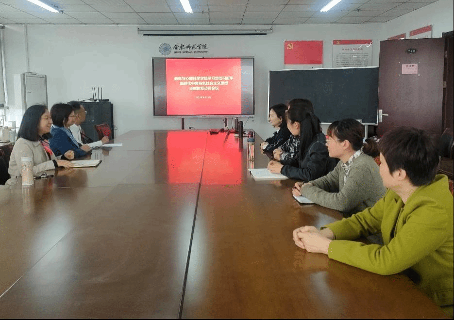 4月24日下午4点,教育系教工党支部全体党员在行知楼710会议室召开学习贯彻习近平新时代中国特色社会主义思想主题教育工作会议,对支部开展主题教育进行安排部署,会议由支部书记汪昌华主持。