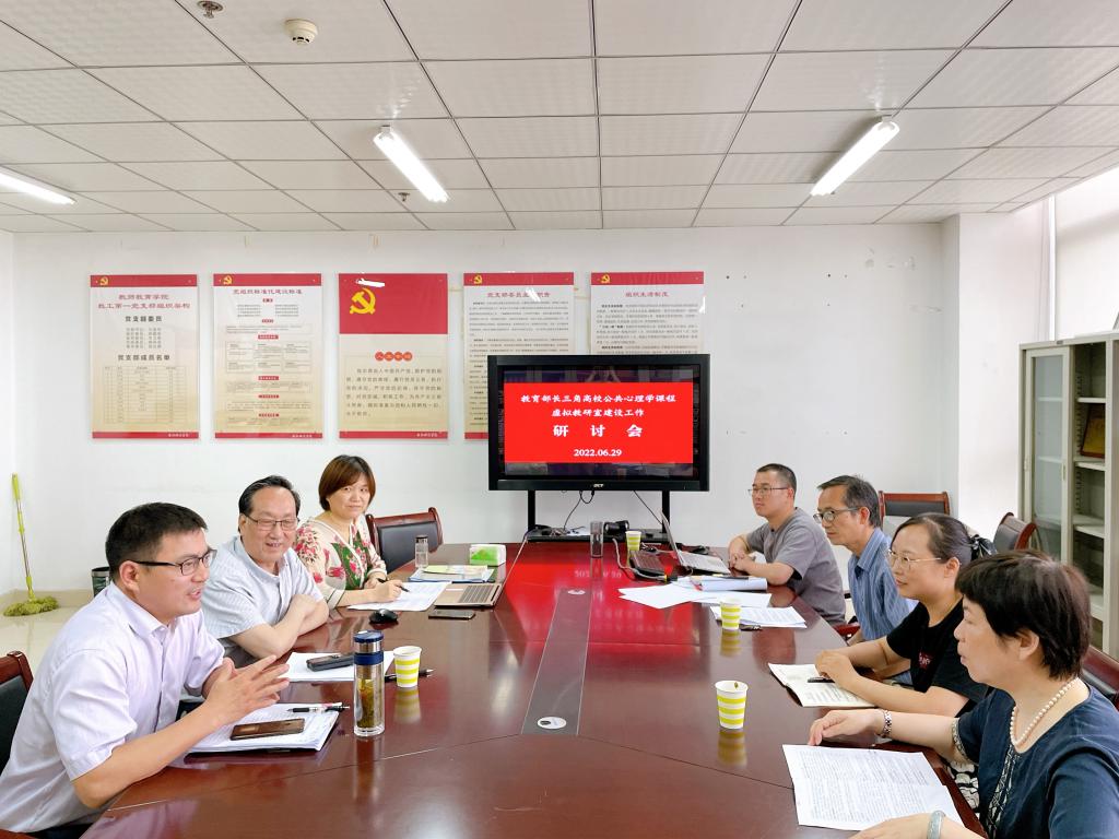 6月29日上午,教育部“长三角高校公共心理学课程虚拟教研室”建设工作研讨会在永利集团304am登录行知楼706会议室召开,永利集团304am登录党委委员、副院长周端明,虚拟教研室负责人姚本先教授,教师教育学院院长李群教授,心理系教研室主任吴桂翎教授及教师代表蒋名平、姚琼、胡哲老师参加会议。
