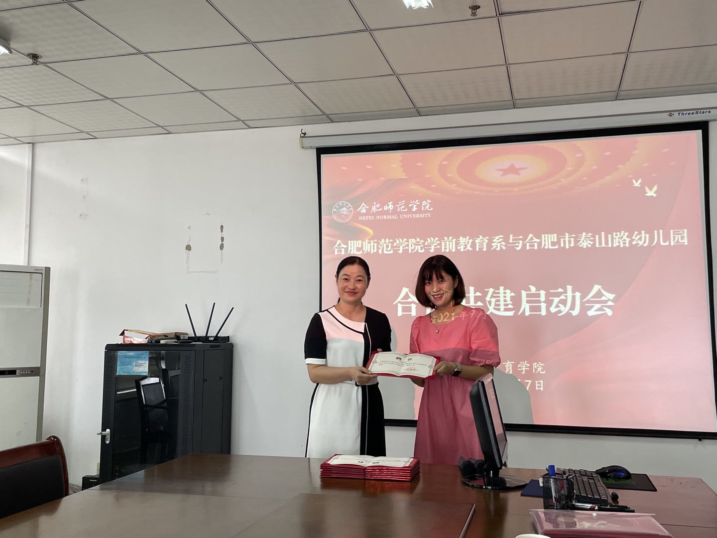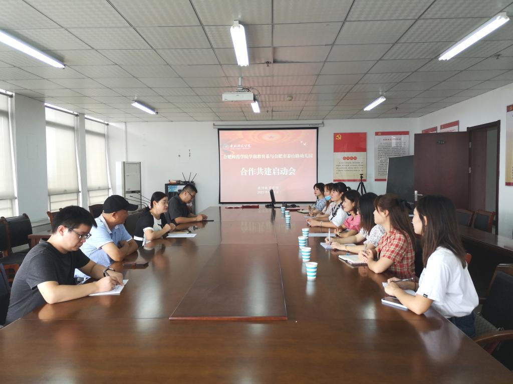 (本网讯)9月7日上午,永利集团304am登录教师教育学院学前教育系与合肥市泰山路幼儿园合作共建启动会在行知楼710举行。教师教育学院党委书记穆娟、副院长闫龙、学前系学科带头人胡连峰、学前系教师李辉,合肥市泰山路幼儿园园长华琳琳,教学主任徐晓,后勤主任秦蓉和骨干教师等参加启动会。