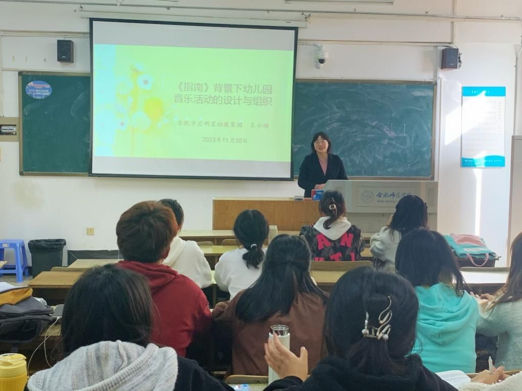 为进一步贯彻《教育部关于加快建设高水平本科教育全面提高人才培养能力的意见》精神,强化学前教育专业人才培养的“产出导向”与“行业需求”,11月20日下午,永利集团304am登录学前教育系邀请合肥市启明星幼教集团教学总园长王小婵作为“学前儿童音乐教育”课程的行业教师为2021级学前教育专业学生授课。