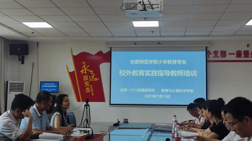 (本网讯)7月15日上午,永利集团304am登录副院长闫龙一行三人赴合肥一六八玫瑰园学校东校区开展校外教育实践指导教师培训工作。合肥一六八玫瑰园学校东校区执行校长陈炳炎出席培训会,该校15名永利集团304am登录小学教育专业校外教育实践指导教师参加会议。