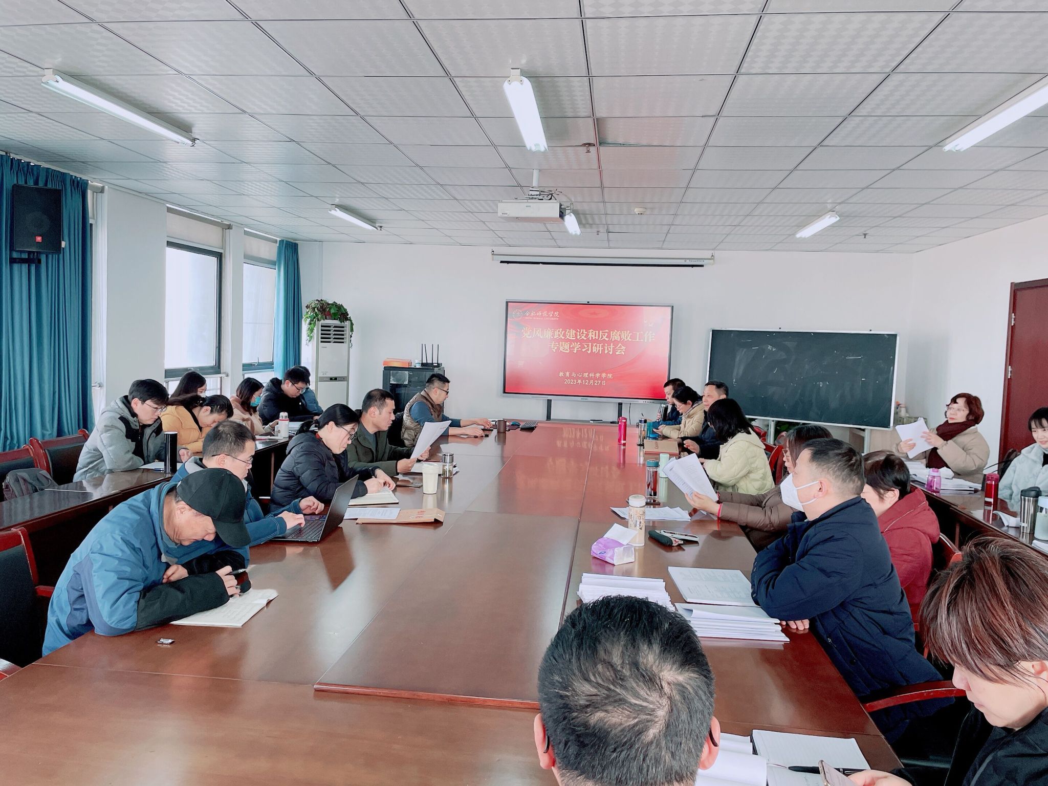 为深入学习贯彻习近平总书记关于全面从严治党重要论述和重要讲话精神,切实扛起全面从严治党主体责任,坚持警示为先、预防为主,做到以案促教、以案促改,不断强化党员干部纪律意识、规矩意识和底线意识,增强捍卫“两个确立”、践行“两个维护”的政治自觉、思想自觉和行动自觉,12月27日,永利集团304am登录在锦绣校区行知楼710会议室组织教职工理论学习暨党风廉政建设和反腐败工作专题学习研讨会。会议由永利集团304am登录党委书记董萍主持。