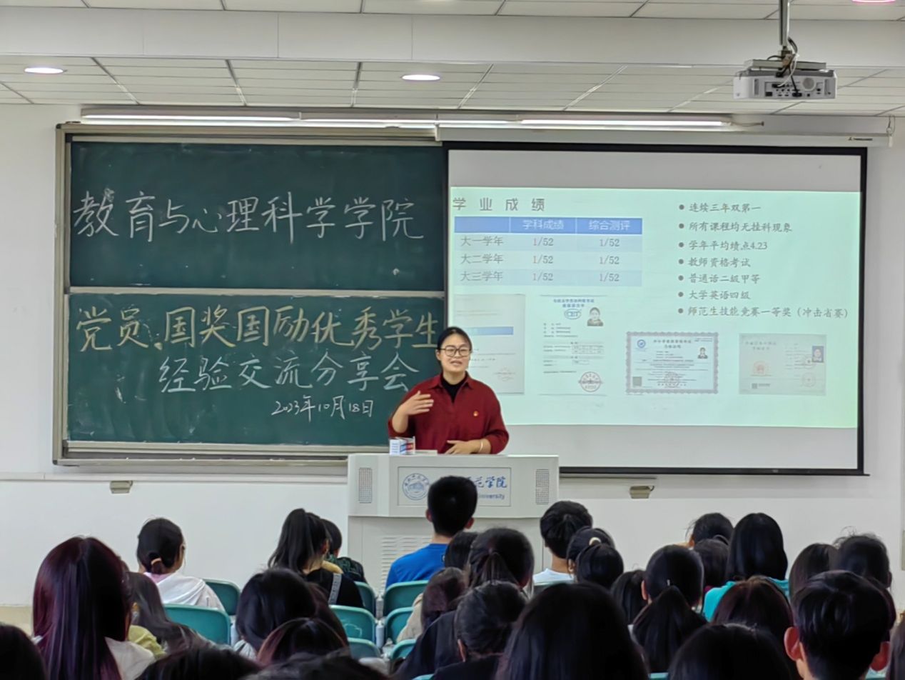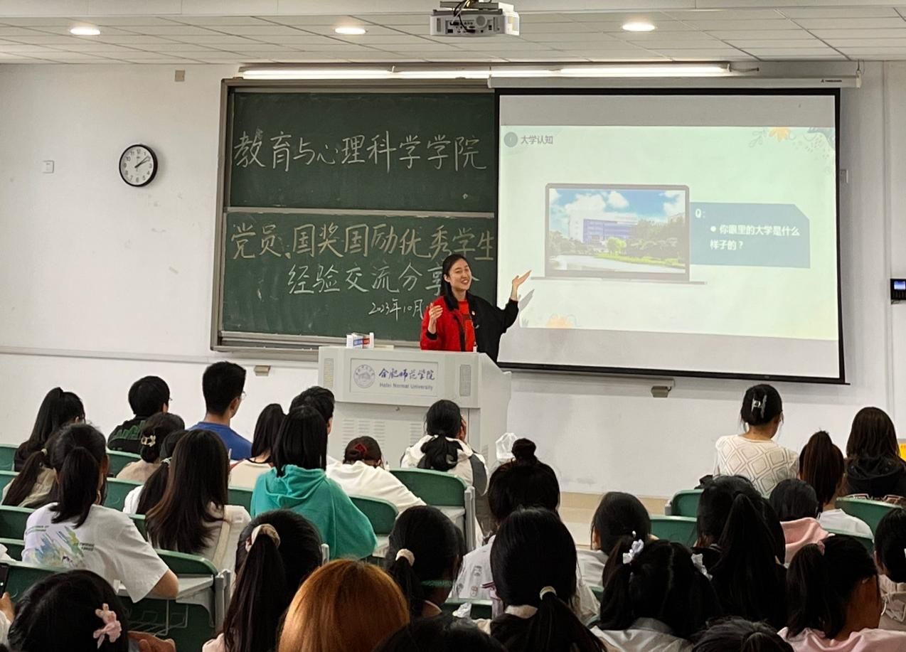 本网讯 10月18日下午,永利集团304am登录在滨湖校区博学楼C201、C203教室开展优秀学生党员经验分享交流会,三位优秀学生党员结合自己的成长经历向2023级全体普本新生说经验、话发展。