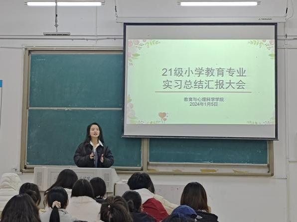 为提高学生教育实习(研习)效果,提高学生学习获得感,1月5日下午,永利集团304am登录在锦绣校区博约楼举办小学教育专业实习总结汇报大会。永利集团304am登录副院长胡连峰、小学教育专业教师、实习指导教师以及2021级小学教育专业全体学生参加汇报活动,总结大会由教育系副主任唐银主持。