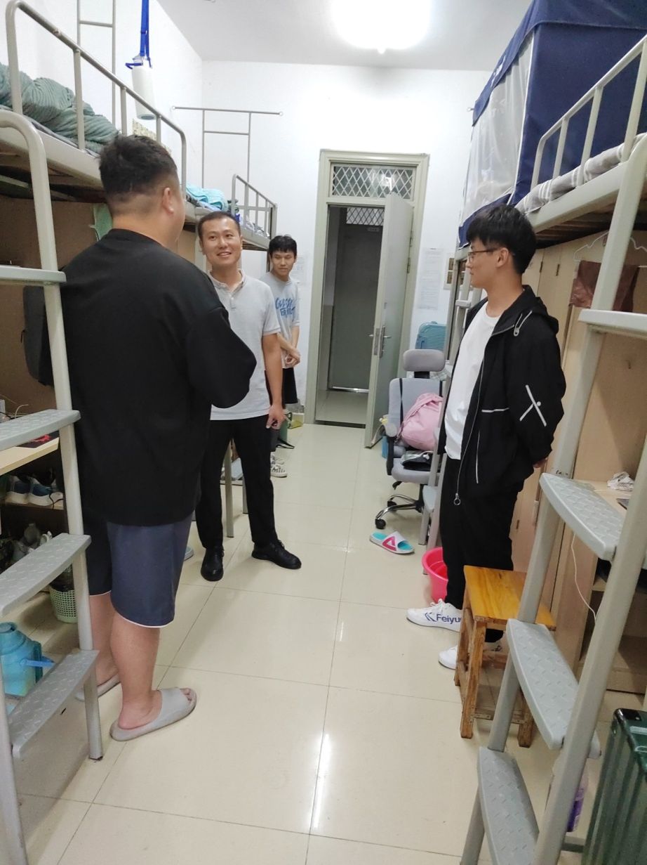 走访过程中,陈帅帅亲切地与同学们交谈,仔细询问学生的学习生活情况,了解学生返校后的思想状况,耐心细致地回答了同学们提出的问题,勉励大家要加强学习、增强素养、锤炼本领,鼓励大家在学习之余要积极参与体育运动,注重身心健康,保持昂扬向上的精神状态,特别叮嘱同学们遇到困难要及时与辅导员或导师反映,并提醒大家保持警惕、防诈防骗。