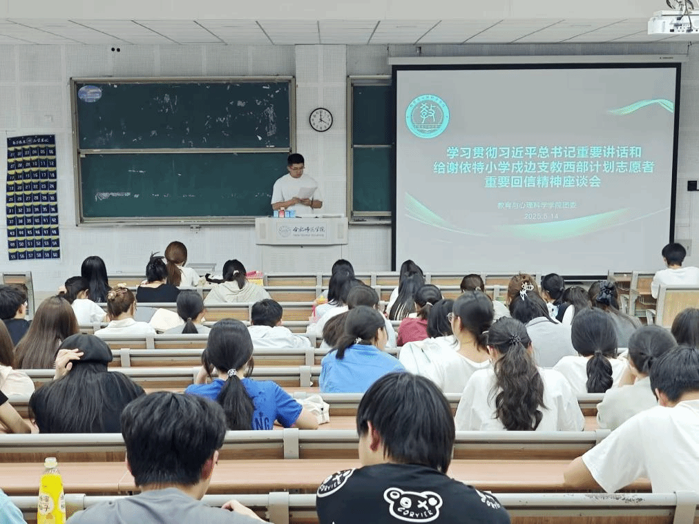 在经验交流环节,2023级应用心理学班团支书吕梓玥同学分享了自己的学习思考以及将来从事教师工作的感想。她表示自己将从回信中深刻体会教育工作者的重要使命,以回信精神指引自己如何站稳三尺讲台。学生会新媒体中心运营部部长巴云龙同学积极发言,他说支教志愿者的事迹深深激励着自己,要努力成为一名无私奉献、敢于担当的新时代青年,在未来的学习和生活中发光发热。