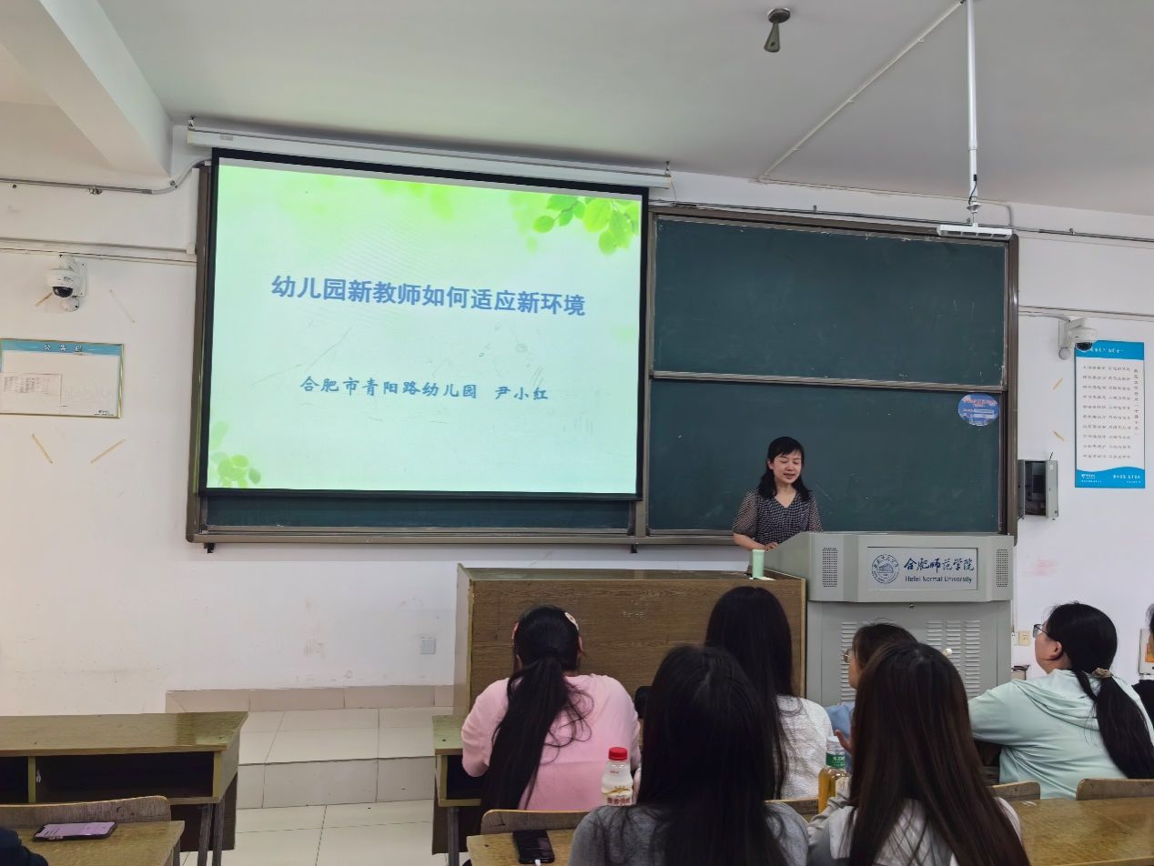 为进一步加强学前教育专业师范生与幼儿园教育一线的联系,不断提升学生适应幼儿园教育环境的综合能力,强化学生的幼儿教育实践素养,5月26日下午,永利集团304am登录学前教育系邀请合肥市青阳路幼儿园尹小红园长为学前教育专业学生作“幼儿园新教师如何适应新环境”专题讲座。