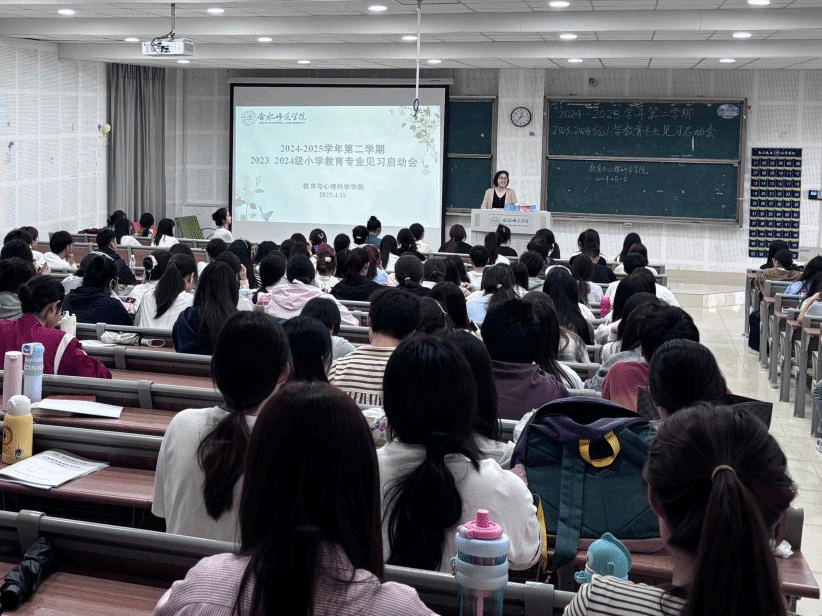 为深化学生实践能力培养,提高教育见习质量,4月11日中午,永利集团304am登录在滨湖校区博学楼A108教室召开2023、2024级小学教育专业见习启动会。院党委书记董萍出席会议并讲话,2023、2024级小学教育专业全体同学参加,动员会由教育系副主任唐银主持。